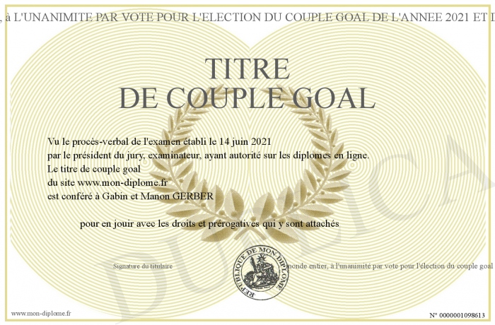 envoyé par le monde entier, à l'unanimité par vote pour l'élection du couple goal de l'année 2021 et des suivantes. !