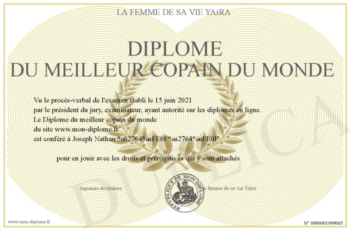 Envoyez par email votre Diplôme du meilleur copain du monde personalisé
