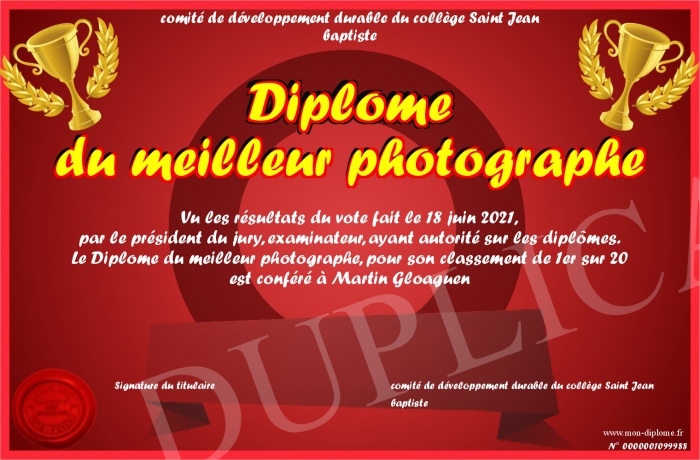 Envoyez par email votre Diplôme du meilleur photographe personalisé