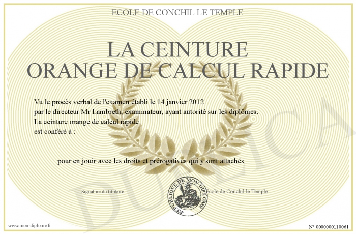 Envoyez par email votre la ceinture orange de calcul rapide personalisé