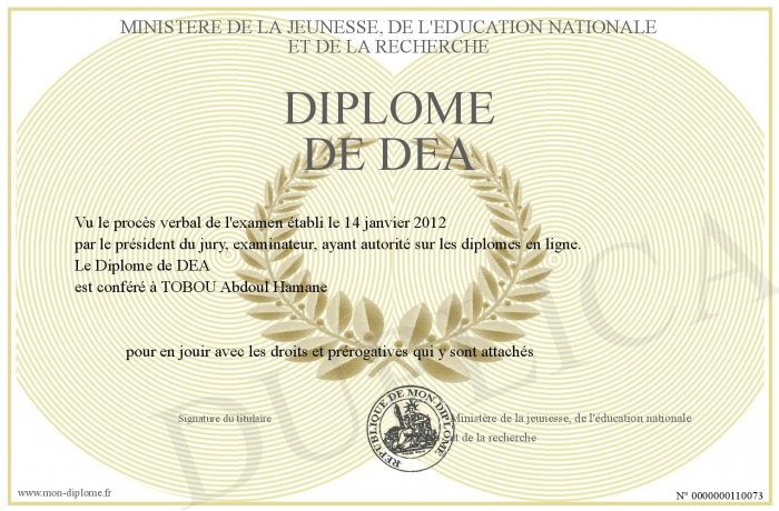 Envoyez par email votre Diplome de DEA personalisé