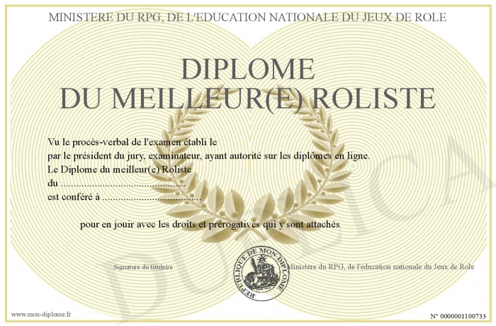 Envoyez par email votre Diplôme du meilleur(e) Rôliste personalisé