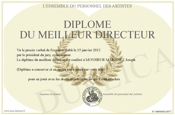 Envoyez par email votre Diplôme du meilleur directeur personalisé