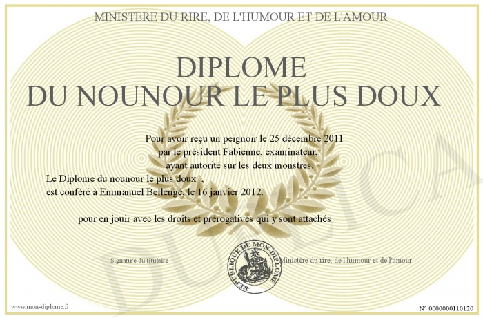 Envoyez par email votre Diplôme du nounour le plus doux personalisé