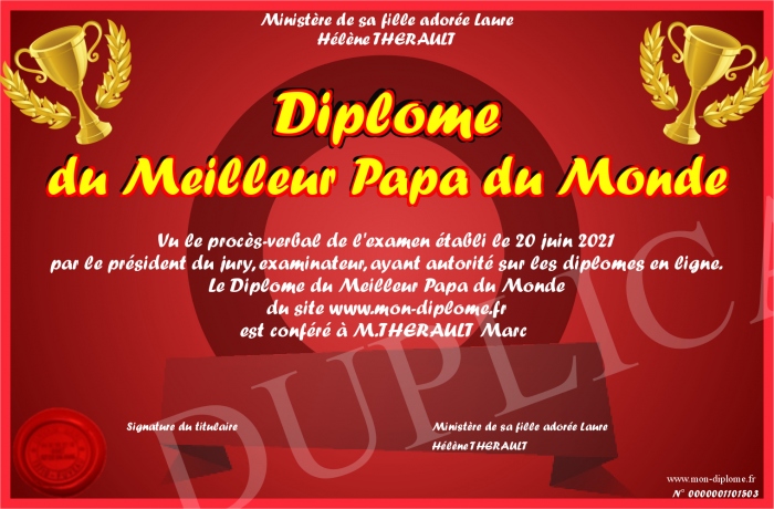 Envoyez par email votre Diplôme du Meilleur Papa du Monde personalisé