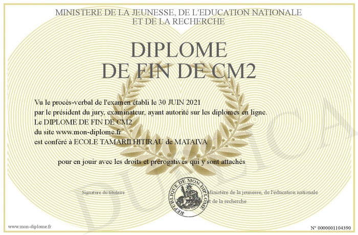 Envoyez par email votre DIPLOME DE FIN DE CM2 personalisé
