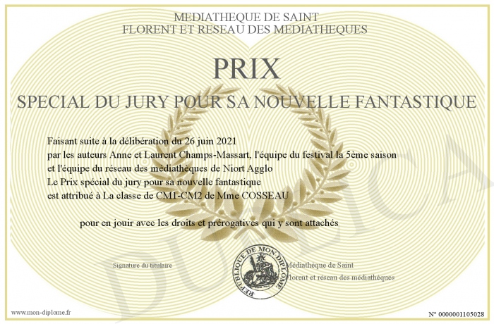 Envoyez par email votre Prix spécial du jury pour sa nouvelle fantastique personalisé