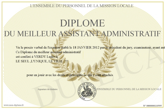 Envoyez par email votre Diplôme du meilleur assistant administratif personalisé