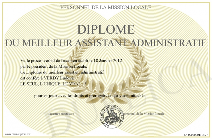 Envoyez par email votre Diplôme du meilleur assistant administratif personalisé
