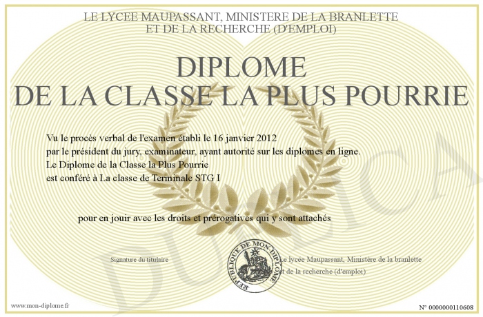 Envoyez par email votre Diplôme de la Classe la Plus Pourrie personalisé