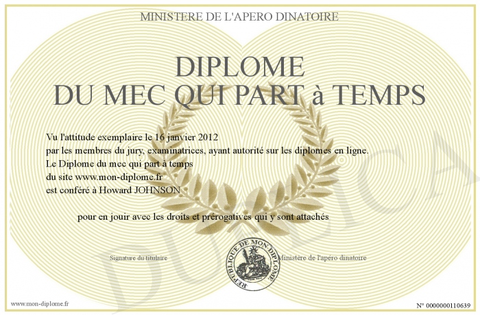Envoyez par email votre Diplôme du mec qui part à temps personalisé