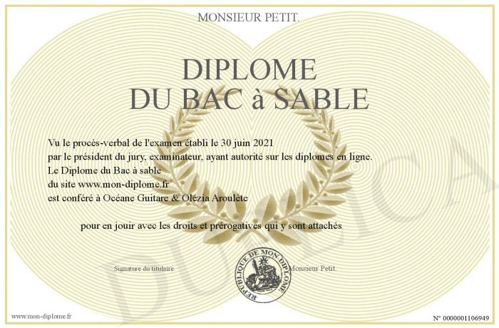 Envoyez par email votre Diplôme du Bac à sable personalisé