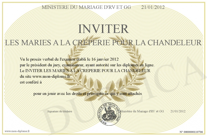 Envoyez par email votre INVITER LES MARIES A LA CREPERIE POUR LA CHANDELEUR personalisé