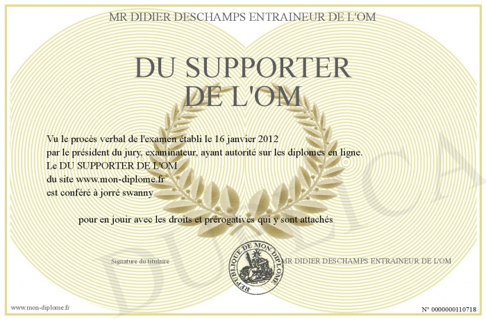 Envoyez par email votre DU SUPPORTER DE L'OM personalisé