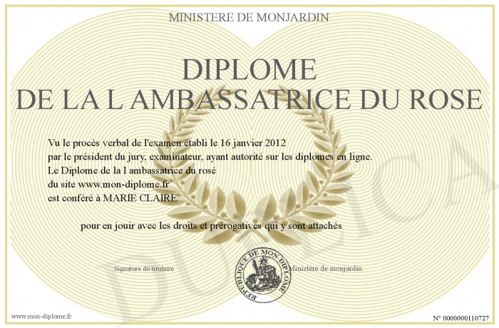 Envoyez par email votre Diplôme de la l ambassatrice du rosé personalisé