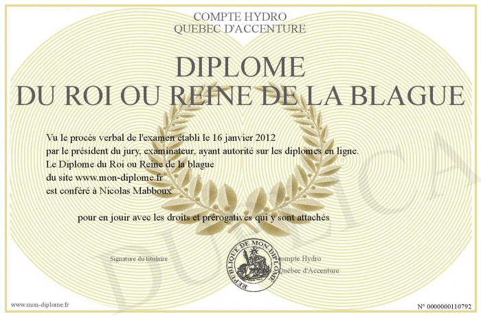 Envoyez par email votre Diplôme du Roi ou Reine de la blague personalisé