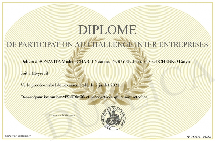 Envoyez par email votre Diplôme de participation au challenge inter entreprises personalisé