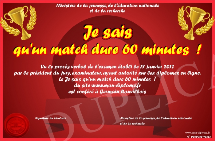 Envoyez par email votre Je sais qu'un match dure 60 minutes ! personalisé