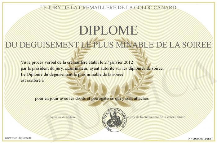• Diplôme du déguisement le plus minable de la soirée