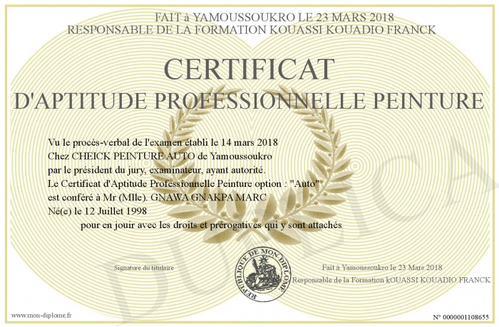 Envoyez par email votre Certificat d'Aptitude Professionnelle Peinture personalisé