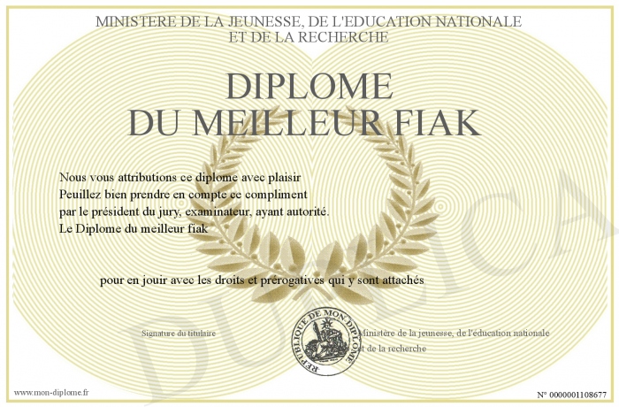 Envoyez par email votre Diplôme du meilleur fiak personalisé