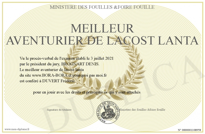 Envoyez par email votre meilleur aventurier de lacost lanta personalisé