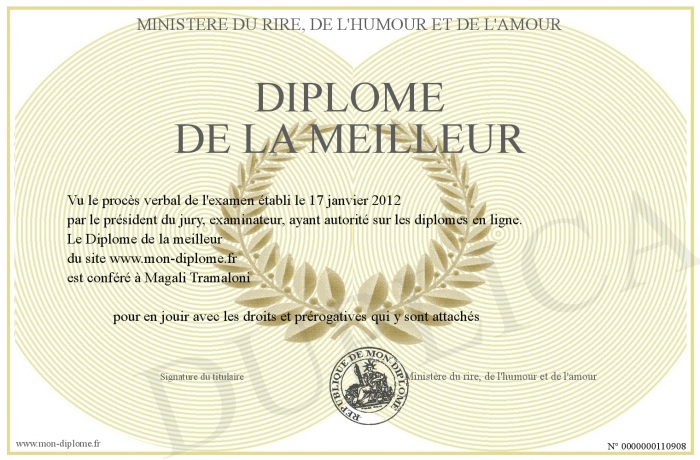 Envoyez par email votre Diplome de la meilleur personalisé