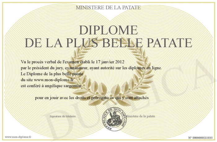 Envoyez par email votre Diplôme de la plus belle patate personalisé