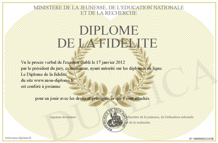 Envoyez par email votre Diplome de la fidelité personalisé