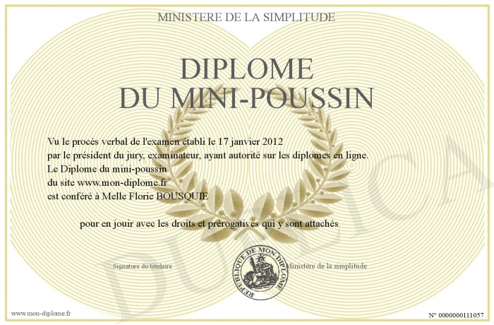 Envoyez par email votre Diplôme du mini-poussin personalisé