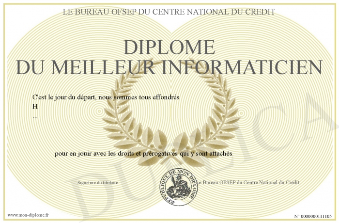 Envoyez par email votre Diplôme du meilleur informaticien personalisé