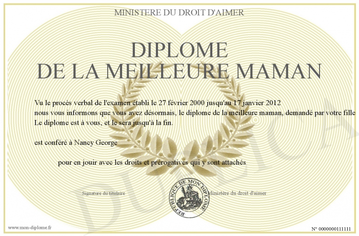 Envoyez par email votre Diplome de la meilleure maman personalisé