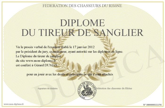 Envoyez par email votre Diplôme du tireur de sanglier personalisé