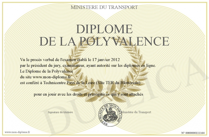 Envoyez par email votre Diplôme de la Polyvalence personalisé