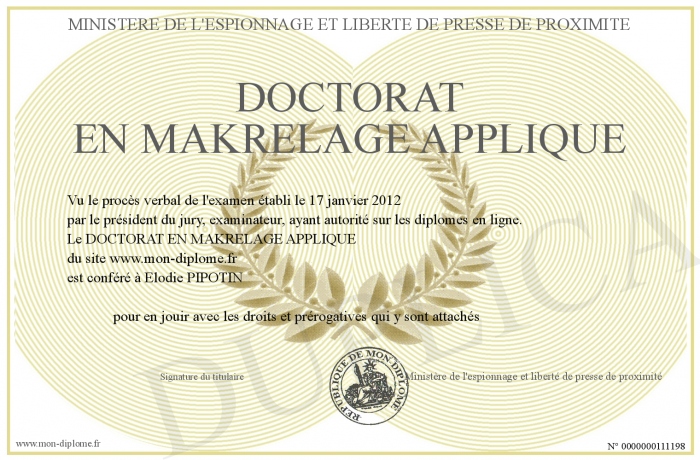 Envoyez par email votre DOCTORAT EN MAKRELAGE APPLIQUE personalisé