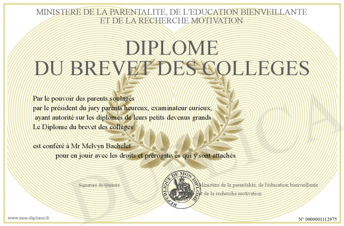Envoyez par email votre Diplôme du brevet des collèges personalisé