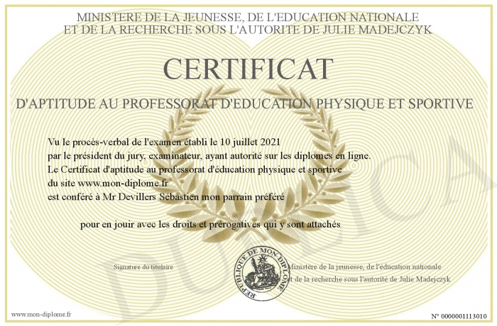 Envoyez par email votre Certificat d'aptitude au professorat d'éducation physique et sportive personalisé