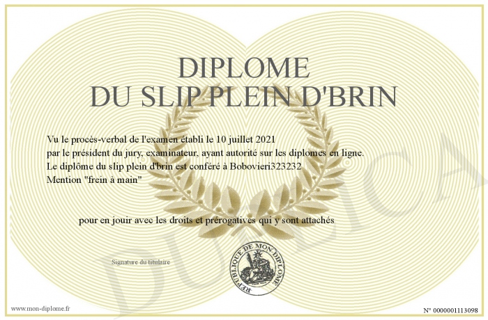 Envoyez par email votre Diplôme du slip plein d'brin personalisé