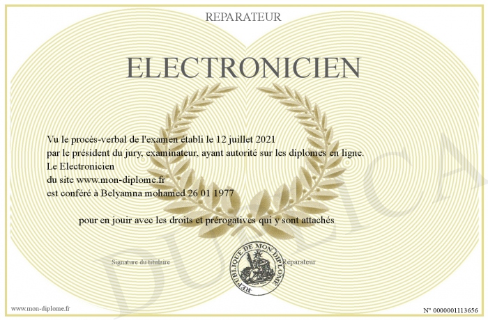 Envoyez par email votre Electronicien personalisé