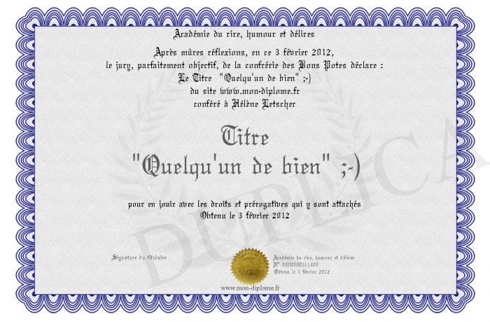 Envoyez par email votre Titre -Quelqu'un de bien- ;-) personalisé