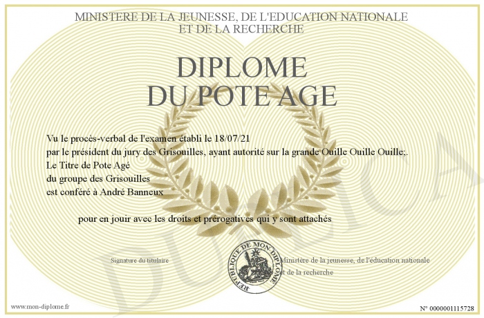 Envoyez par email votre Diplôme du Pôte Agé personalisé