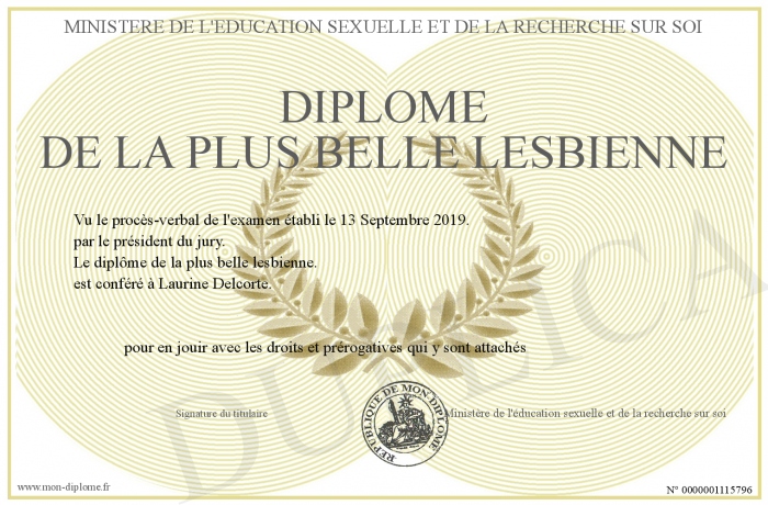 Envoyez par email votre Diplôme de la plus belle lesbienne personalisé