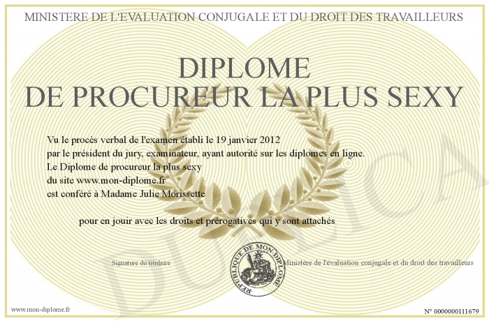 Envoyez par email votre Diplôme de procureur la plus sexy personalisé