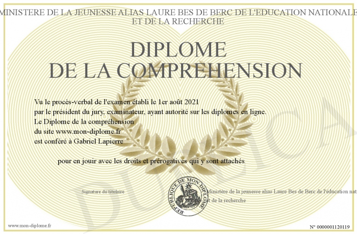 Envoyez par email votre Diplôme de la compréhension personalisé