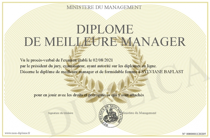 Envoyez par email votre Diplome de meilleure MANAGER personalisé