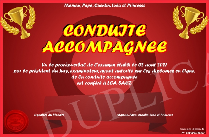Envoyez par email votre CONDUITE ACCOMPAGNEE personalisé