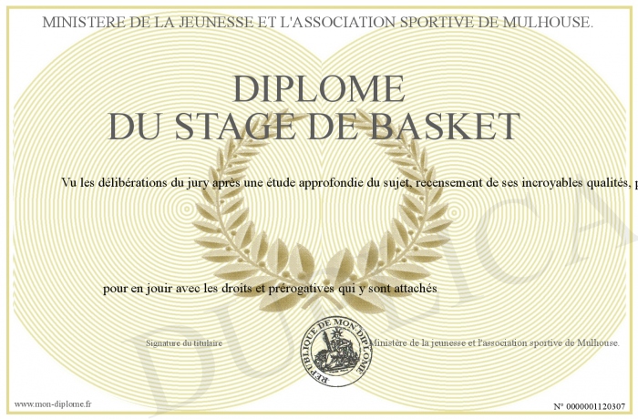 Envoyez par email votre Diplôme du STAGE DE BASKET personalisé