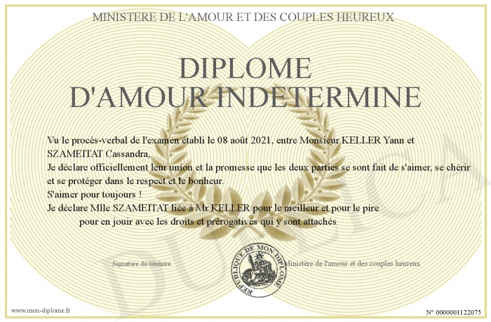 Envoyez par email votre DIPLOME D'AMOUR INDETERMINE personalisé