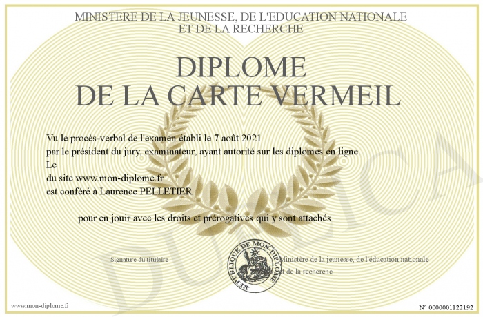 Envoyez par email votre Diplôme de la carte vermeil personalisé