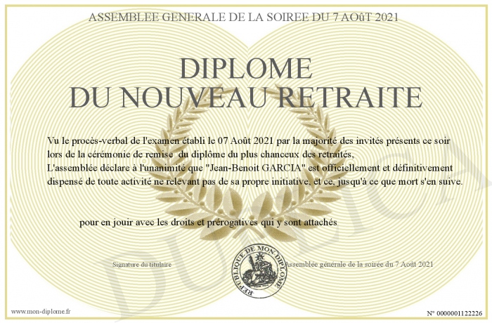 Envoyez par email votre Diplôme du nouveau retraité personalisé